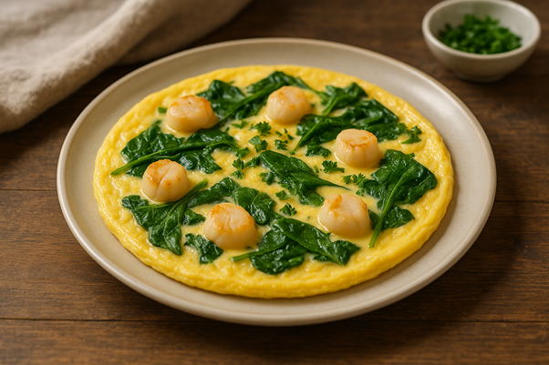 Омлет с гребешками и шпинатом