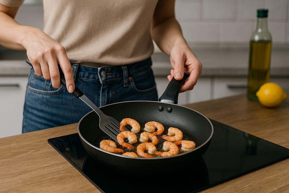 1) Обжарка или отваривание креветок