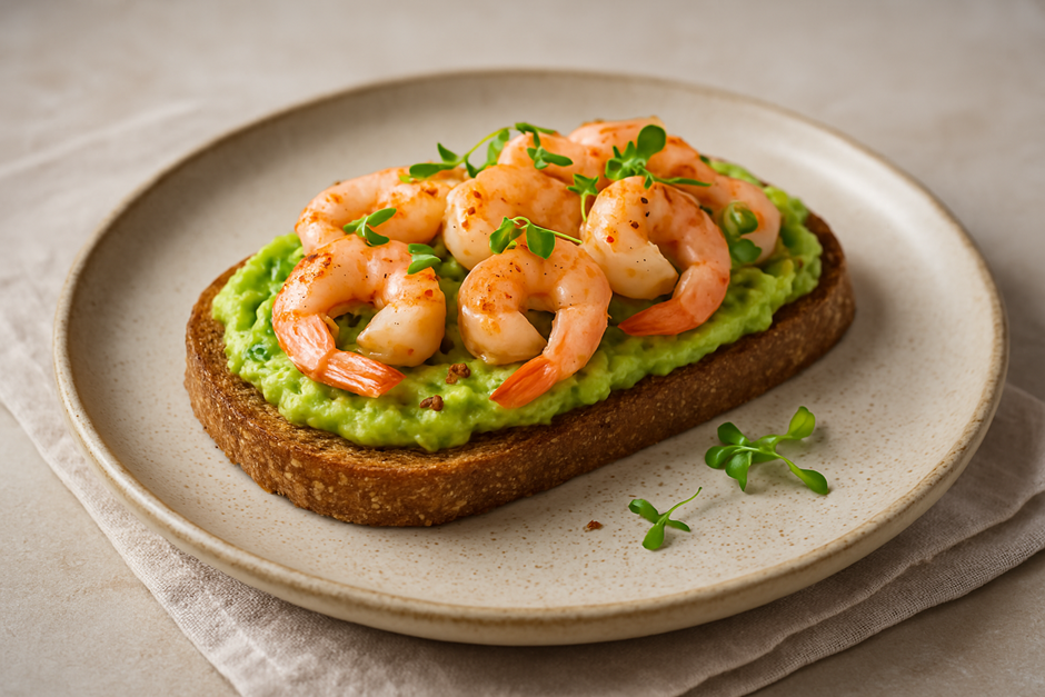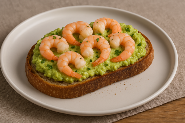 Авокадо-тост с креветками «Далькреветка»